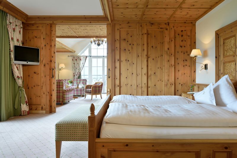 große Seniorsuite mit Wohnzimmer und extra Schlafzimmer 70 m², mit herrlichem Panoramablick zur Zugspitze und Sonnenspitze
